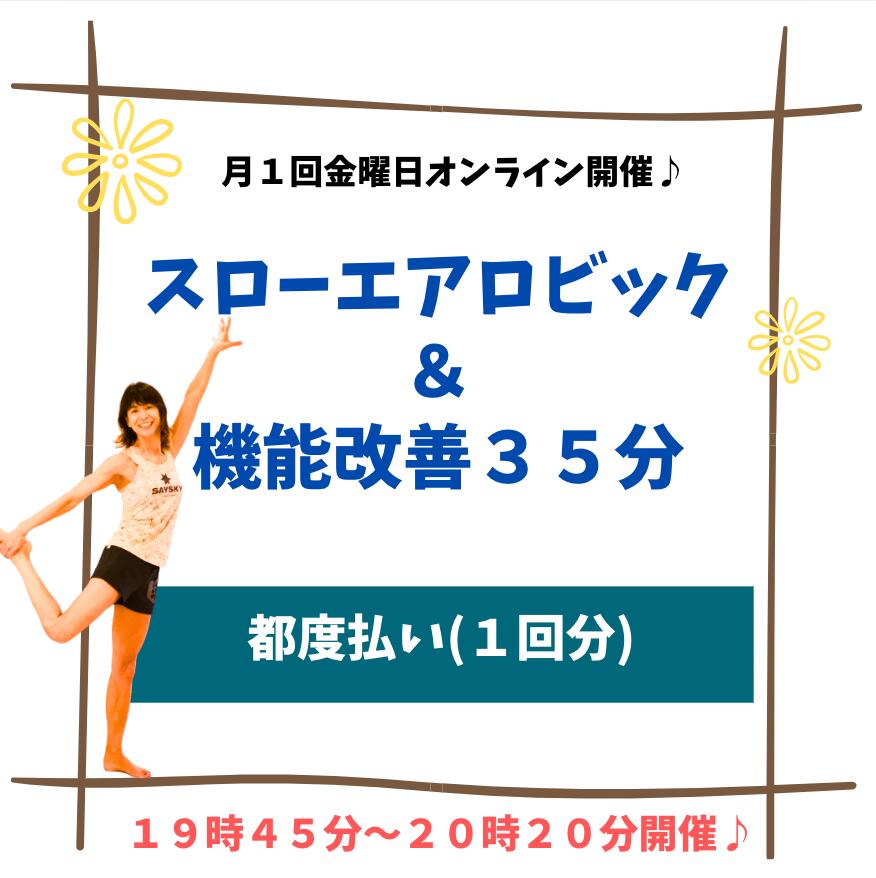 オンラインレッスン「スローエアロビック&機能改善35分」の【都度払い(1回分)】購入ページです。